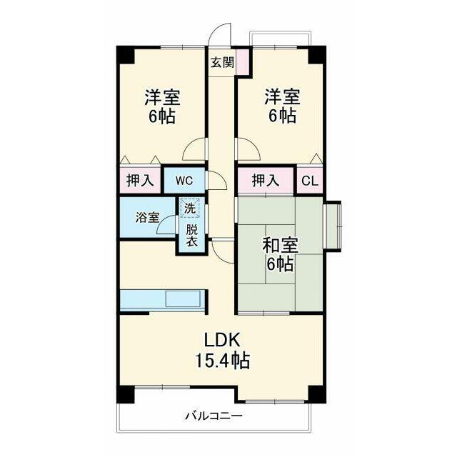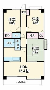 | 間取り | 3LDK(洋6、6、和6、LDK15.4) | 主要採光面 | 南 |